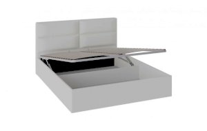Кровать Глосс ТД 319.01.06 с ортопедическим основанием и подъемным механизмом (спальное место 140х200 см) Белая экокожа