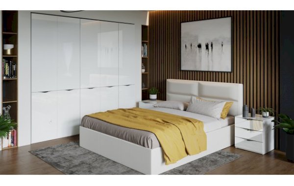 Кровать Глосс ТД 319.01.02 с ортопедическим основанием и подъемным механизмом (спальное место 160х200 см) Белая экокожа