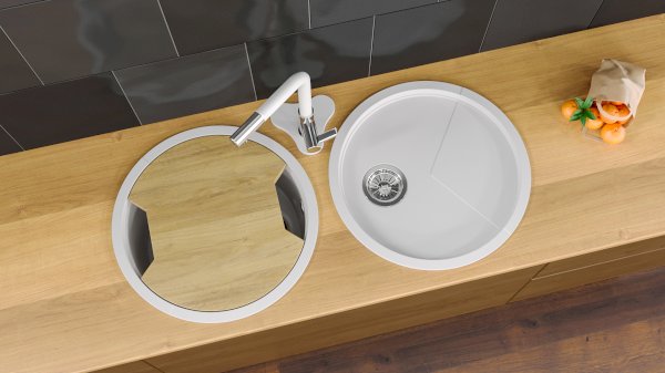 Кухонная мойка Spring служит дополнением к сету круглых моек. Малая глубина чаши и антибактериальная поверхность идеально подходят для сушки посуды и продуктов.