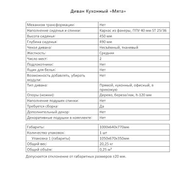 Кухонный диван Мята (Аквилон) – товар доступен к покупке в интернет-магазине dommebeli-v-petropavlovsk-kamchatskij.ru. Цена – 12 506 руб. без учета доставки. Стоимость дополнительных услуг и сроки получения мебели уточняйте у менеджера. Возможен безналичный расчет, оплата по карте на сайте.