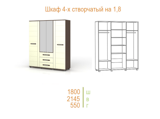 Шкаф 4-х створчатый 1800